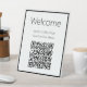 Bienvenue à vos visiteurs avec ce panneau noir et blanc. Il y a une image d'affichage en bas. Vous pouvez remplacer l'image par votre propre code QR pour envoyer vos clients à votre menu. Le texte d'affichage peut être modifié pour afficher le texte souhaité. Texte affiché : Bienvenue Jacob's Coffe Shop Scan For Our Menu