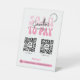 Signe à la mode et chic business Scan to Pay avec espace pour 2 codes QR et votre nom d'entreprise et vos coordonnées. Ce panneau de paiement pour l'entreprise propose des polices rétro en rose et en script tendance pour votre nom d'entreprise, ou vous pouvez même ajouter votre logo. Ce panneau supérieur à deux codes QR permettra à vos clients de faire un paiement directement à partir de leur téléphone ou tablette, parfait à utiliser à votre caisse, à votre marché artisanal ou à afficher dans votre magasin.
