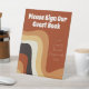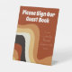 Cette enseigne rétro super, mariage, est ornée de lignes ondulées dans le bronze, le brun et l'orange, qui rappellent le style de vie les années 70 et hippie. Décor vintage et audacieux avec script blanc funky à côté des lignes courbes abstraites. Amusez-vous avec ces tonalités de terre amusantes. Veuillez signer notre livre d'or.