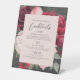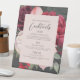 Beautiful watercolor bridal bouquet, with flowers in rich shades of red and pink, trimmed with silver green botanicals... and your bar menu in lovely fonts.