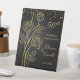 Roses d'or et confettis sur un panneau de piédestal du 50e anniversaire Mariage d'arrière - plan noir