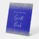 Un panneau chic et élégant pour que les clients mariages invitations signent leur livre d'or. Les mots "Livre d'Invité" apparaissent en calligraphie d'écriture blanche sur un arrière - plan bleu royal.
