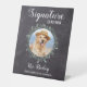 Signature Boissons de vos animaux de compagnie! Inclure votre meilleur chien, meilleur chat et tout animal de compagnie dans votre mariage avec son bar à boissons signature pour vos invités. Parfait pour les amoureux de les chiens, et un bar spécial chien sera un succès à votre mariage. Tableau noir simple mais rustique avec feuilles eucalyptus. Customisez ce signe mariage animal de compagnie avec votre chien, chat, chiot ou chaton photo préférée, nom et signature boisson!. DROIT D'AUTEUR © 2020 Judy Burrows, Black Dog Art - Tous droits réservés. Rustic Pet Mariage Signature Boissons Photo Piédestal Signal
