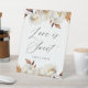 Mariage floral rustique favoriser le panneau de piédestal avec des fleurs de chute d'aquarelle et le feuillage dans les tons d'ivoire, crème, marron et rouille orange. L'élégant design floral d'automne est complété par un script de calligraphie moderne. Personnalisez l'amour est doux signe mariage avec votre texte personnalisé. Le signe de faveur de mariage floral d'automne est parfait pour votre mariage de automne ou événement spécial. Conçu pour coordonner avec notre collection Rustique de mariages floraux d'automne.