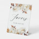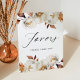 Le mariage floral rustique privilégie le guéridon avec des fleurs de chute d'aquarelle et du feuillage dans les tons ivoire, crème, marron et rouille orange. L'élégant design floral d'automne est complété par un script de calligraphie moderne. Personnalisez le signe des faveurs de mariage avec votre texte personnalisé. Le signe de mariage floral d'automne est parfait pour votre mariage de automne ou événement spécial. Conçu pour coordonner avec notre collection Rustique de mariages floraux d'automne.