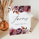 Le mariage floral rustique privilégie le guéridon avec des fleurs de chute d'aquarelle et du feuillage dans les tons marsala, bordeaux, violet, brun et rouille orange. L'élégant design floral d'automne est complété par un script de calligraphie moderne. Personnalisez le signe des faveurs de mariage avec votre texte personnalisé. Le signe de mariage floral d'automne est parfait pour votre mariage de automne ou événement spécial. Conçu pour coordonner avec notre collection Rustique de mariages floraux d'automne.