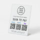 Panneau de piédestal de table moderne simple pour votre entreprise avec les codes QR Venmo, Paypal et Zelle pour que les clients scannent pour les paiements. Ajoutez votre logo, vos codes QR, le nom de votre entreprise, votre numéro de téléphone et votre adresse rue dans une typographie simple.