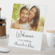 Ce panneau est parfait pour célébrer votre journée spéciale, et vous souhaite la bienvenue à vos invités. Le panneau a un élégant arrière - plan blanc avec une police de script de style manuscrit moderne en noir pour les noms. Personnalisez et ajoutez votre propre photo.