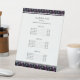 Simplement élégant noir et blanc salon professionnel d'animaux de compagnie business service menu guéridon avec empreintes de pattes de parties scintillant violet, rose et bleu. Personnalisez-le avec votre nom, profession, slogan et services offerts.