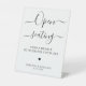 Siège ouvert ! Calligraphie simple mais élégante, ce panneau mariage d'accueil dispose de calligraphie élégante en noir moderne. Customisez ce panneau de mariage élégant avec vos noms et votre date!