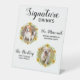 Signature Boissons de vos animaux de compagnie! Inclure votre meilleur chien, meilleur chat et tout animal de compagnie dans votre mariage avec son bar à boissons signature pour vos invités. Parfait pour les amoureux de les chiens, et un bar spécial chien sera un succès à votre mariage. Moderne, simple, blanc avec des tournesols et des feuilles verdoyants. Customisez ce signe mariage animal de compagnie avec votre chien, chat, chiot ou chaton photos préférées, noms et boissons signature!. DROIT D'AUTEUR © 2020 Judy Burrows, Black Dog Art - Tous droits réservés. Signature Boissons Sunflower Animaux de compagnie Mariage Photo Piédestal