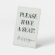 Cette conception respectable et élégante comporte le message "S'IL VOUS PLAÎT AVOIR UN SIÈGE!". Il dispose également d'un professionnel/clinique/entreprise/organisation/etc. sur mesure. nom. On pourrait l'utiliser dans une zone de réception pour informer les visiteurs, les clients ou les clients qu'ils seront accueillis sous peu et qu'ils devraient avoir un siège entre-temps.