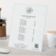 Montrez vos services avec style à l'aide de ce panneau de piédestal moderne avec une mise en page de liste de prix propre et code QR. Conçu pour les salons, les spas, les boutiques, les cafés et les entreprises de services, ce panneau de table personnalisable vous permet de présenter vos offres de manière élégante et accessible. Cet écran acrylique droit comprend votre nom d'entreprise, les catégories de services, les prix et les informations de contact essentielles. Un code QR fonctionnel en bas permet aux clients de scanner et de se connecter instantanément, que ce soit pour réserver, naviguer ou suivre sur les médias sociaux. Idéal pour les comptoirs, les bureaux de réception ou les espaces d'auto-retrait, ce panneau garde votre menu ou liste de service claire et en vue. Le design monochrome simple assure une image de marque professionnelle tout en offrant une flexibilité adaptée à votre esthétique. Vous pouvez personnaliser le texte avec vos propres en-têtes, services, prix et coordonnées, et utiliser l'espace réservé au logo pour télécharger votre marque. Une façon pratique et polie d'améliorer votre expérience client et de garder vos détails d'affaires à l'avant-garde et au centre.