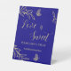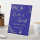 Signe De Table Simple or floral royal bleu mariage gâteau table