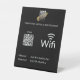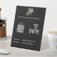 Put this black wifi sign in a prominent place in your reception area. Your customers veut then have the details they need to access your internet connection. This sign est idéal pour both large and small companies. Customizing this is easy. Vous voulez add your logo and your business name at the top. Tu veux ton code add your QR. If you don't have one, these can easily be made online to link to your site web. This simple informal sign can be used not just for your access your internet settings, but to promote your business further. Lastly, you'll add the network name and passcode. This information is helpful for those who't either have a smartphone ou work from a laptop. By placing this sign on a reception desk, you will free up your staff's time and autonomwering your visitors. This simple advice sign is on a white background with black text and suitable for any business environment.