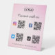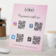Obtenez plus d'abonnés avec ce panneau cool de piédestal, avec 4 codes QR, Logo Professionnel Personnalisé & Texte. Ajoutez facilement vos détails en cliquant sur l'option "personnaliser".
