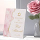 Une agate rose et or chic orne le côté de cet élégant panneau de piédestal Bat mitzvah. Le nom de votre fille est écrit dans une belle écriture formelle sous l'Étoile de David. Décor de table parfait pour une famille juive chic célébrant une fille appelée à la Torah.