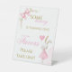 Guide guests to your party favors in the sweetest way with this personalized “Some Bunny” favor table sign. Featuring a watercolor bunny in a blush pink dress, delicate floral accents, and a classic pink bow, this charming table sign is perfect for displaying a “Please Take One” message at a baby girl’s first birthday celebration.