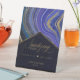 Vous obtenez à la fois le glamour et l'impact élevé avec cet ensemble de mariage de coordination qui comprend des motifs d'agate abstraits, texturés avec des faux cristaux et des reflets dans un film d'or scintillant. Des combinaisons de couleurs frappantes, comme cette suite avec sa palette ciel de nuit du bleu profond de minuit au violet doux, créent l'arrière - plan pour les pièces de cet ensemble coordonné. Cette enseigne "Sanitizing Station" présente toutes les calligraphies ci-dessus ainsi qu'une calligraphie élégante et un modèle pour ajouter facilement vos noms, message et date de mariage. Affichez le lien de collection sur cette page pour voir tous les éléments correspondants dans cette belle conception ou recherchez ID827 pour voir des choix de couleurs supplémentaires.
