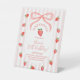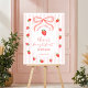 Invite your guests to participate in a meaningful tradition with this matching "Berry First" table sign. Featuring the signature pink coquette bow and watercolor strawberries, it clearly marks your time capsule station while adding to the whimsical decor. This sign ensures your memory-making activity is organized and looks beautifully professional within your strawberry theme.