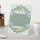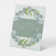 Panneau mariage pour la table du livre d'or. Le design botanique est composé de feuilles d'eucalyptus gris-bleu. Un sangle de verdure en haut et en bas avec un panneau vert pâle au centre pour le texte. Les feuilles de l'aquarelle travaillent pour une cérémonie de mariage à thème rustique ou nature. Il s'agit d'une des nombreuses tailles à choisir.