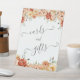Elégant panneau de piédestal "Cartes et cadeaux" botanique, il présente de jolies fleurs d'aquarelle dans les tons orange, rouge, jaune et pêche, avec des feuilles verts, combinées en un beau bouquet.