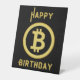 Ce panneau de piédestal comporte les mots "Joyeux anniversaire" dans une police d'impression unique avec des lettres d'or clair affichant un B avec un signe dollar look au centre dans ce thème et style d'anniversaire de crypto-monnaie. Imprimé avec une impression numérique pleine couleur de haute qualité disponible en 4 tailles en polystyrène 1/16" blanc 10" x 12" avec base de piédestal 3".