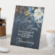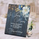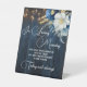 Un design élégant avec une calligraphie élégante complétée par un magnifique bois bleu, des lampes à cordes de jardin et un bleu blanc floral avec parties scintillant d'or. Vous pouvez personnaliser ceci avec votre message.
