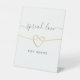 Elégant, simple mariage blanc Étendre Love Not Germs signe de table avec faux coeur de corde or et script de calligraphie moderne.