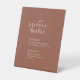 Cette enseigne moderne chic en terre cuite signature boissons en rouille est parfaite pour un mariage simple. Le design boho du désert présente une typographie bohème rustique unique et élégante, dans une couleur de rouille orangée brûlée. Personnalisez ce panneau mariage de guéridon avec les noms du couple.