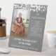 Joli, moderne et simple Dans Memoriam signe mariage caractéristiques main gauche bordure gauche sur arrière - plan gris avec espace réservé photo et texte blanc personnalisable pour fournir des détails des êtres chers au-delà du domaine physique mais toujours une partie de célébrations spéciales