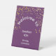 Sa 40ème Affiche de bienvenue : parties scintillant or/piédestal violet avec nom et date personnalisés. Stand robuste et décor de luxe jalon.