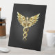Symboles Caduceus polygonaux or sur arrière - plan noir isolé. Basse poly symbole de la médecine.