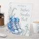 Basket boule de bienvenue signe de table avec de jolis baskets bleus et diamants sur un arrière - plan tourbillon. Ce signe d'accueil à billes baskets est facilement personnalisable pour votre événement en ajoutant simplement vos détails. Vous pouvez également modifier la couleur de l'arrière - plan.