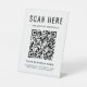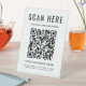 Panneau de piédestal tabletop moderne pour votre entreprise avec votre code QR pour les clients à rechercher une liste de vos produits, services et prix, pour visualiser votre menu, pour effectuer des paiements mobiles sans contact, etc. Téléchargez votre code QR et ajoutez votre nom d'entreprise, votre numéro de téléphone, votre site Web, votre slogan ou d'autres informations dans une simple typographie.