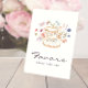 Laissez votre journée spéciale fleurir avec Tea Party favorise le signe de piédestal! Ce design présente de superbes fleurs d'aquarelle peintes à la main dans des teintes de violet profond, de bleu poussiéreux et de rose roux avec de la végétation sauge. Que vous soyez l'hôte d'une fête de jardin ou d'un rassemblement intime et confortable, ce magnifique panneau de piédestal apportera une touche de charme spéciale à votre événement. Trouvez des produits de coordination dans la Fête des mariées de Tea Party Fleur sauvage Watercolor.