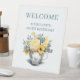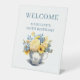 Joli petit thé avec fleurs bleues et jaunes printemps ou fête d'anniversaire d'été "Welcome" guichet, personnalisé avec le nom et l'âge de l'invité d'honneur. Contactez-moi pour obtenir de l'aide sur vos personnalisations ou pour demander des produits Zazzle correspondants ou coordonnés supplémentaires pour votre groupe.