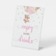 Aquarelle Teddy Bear Rose et Rose Gold Balloons Profitez De Quelques Boissons Bar Table Signal Baby shower. Le design présente une élégante disposition de texte de style moderne. Pour effectuer des modifications avancées, sélectionnez l'option "Cliquez pour customiser plus loin".