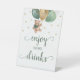 Aquarelle Teddy Bear Sage Green et Gold Balloons Prenez Quelques Boissons Bar Baby shower de table signe.