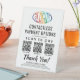 Fournissez une commodité de paiement sans contact et dites merci aux clients avec un code QR personnalisé et le logo "Scan to Pay" panneau de piédestal tablette "Scan to Pay". Tout le libellé de ce modèle est simple à personnaliser ou à supprimer. Les couleurs, les polices et la transparence du logo sont également faciles à customiser à l'aide de l'outil de design Zazzle. En fournissant 3 codes scannables rend plus probable que les clients peuvent payer en ligne en utilisant l'application de leur choix. Le design moderne en noir et blanc présente une calligraphie stylisée, une typographie minimaliste élégante, l'image de marque de votre entreprise et trois codes QR. Convient aussi bien aux petites entreprises qu'aux grandes entreprises, cette enseigne de marque d'entreprise offre un confort moderne à des clients au style professionnel chic. Tout le texte sur ce modèle est simple à customiser pour toute publicité ou marketing promotionnel. Le message de Merci en bas peut être personnalisé avec n'importe quel texte. Le design noir et blanc présente une calligraphie de script élégante, une typographie minimaliste classique, l'image de marque de votre entreprise et jusqu'à trois codes QR scannables représentant votre choix d'applications de paiement mobile sans contact. Les clients qui préfèrent payer sans contact apprécieront la possibilité de payer avec des portefeuilles numériques via leur smartphone ou leur tablette. Convient aux petites entreprises ainsi qu'aux grandes entreprises, cette enseigne de marque d'entreprise dit merci à vos clients avec un style professionnel élégant.