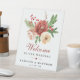 Élégante Terracotta Blush Pink Blanc Floral Pine de Noël Pin Poulage Foliage d'hiver Mariage Bienvenue Piédestal Signal. Tous les textes sont pré-arrangés pour que vous personnalisiez facilement et rapidement avec vos propres détails.