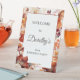 D'élégantes fleurs d'aquarelle orange en terre cuite créent un cadre fleuri audacieux sur ce panneau d'anniversaire fleuri d'automne. Un script élégant lui donne une ambiance classique.