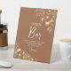 Elégant, moderne, boho, rouille orange terre cuite mariage Open Bar signe de piédestal avec dentelle dorée fleurie et script de calligraphie simple.