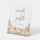 A refined Cards & Gifts wedding sign featuring warm terracotta wildflowers and soft mountain scenery, designed for elegant reception table styling.