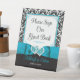 Maintenant que vous avez trouvé l'amour de votre vie et que vous planifiez votre mariage, n'oubliez pas d'obtenir une signalétique mariage personnalisée qui correspond à votre schéma de couleurs bleu et noir turquoise ou turquoise. Ce guéridon mariage damassé en noir et blanc présente des images d'une paire de coeurs unis au-dessus d'un ruban bleu turquoise et une image d'arc traversant la partie inférieure du panneau. Les noms de la mariée et du marié et la date du mariage sont imprimés en bleu turquoise et blanc sous l'image du ruban. Le libellé personnalisable au-dessus du ruban dit, "S'il vous plaît signer notre livre d'invité" en script noir, mais vous pouvez changer cela pour dire ce que vous voulez. Si vous avez besoin d'autres articles correspondants, envoyez votre demande par courriel à niteowlstudio@gmail.com ou utilisez la fonction conversation Zazzle pour entrer en contact.