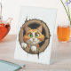 Signe De Table Un chat de dessin animé avec des yeux verts brilla