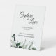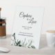Ce mariage botanique neutre capte le panneau de piédestal d'amour fournit un palais plante simple et rustique pour coordonner avec n'importe quel thème de mariage ou d'événement traditionnel. La verdure minimale, aux tons gris et foncés d'élégants feuilles d'eucalyptus verts et de feuillage plante, à côté de la calligraphie décontractée classe, ouvre une ambiance de nature minimaliste à une célébration classique et formelle du mariage.