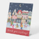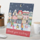 Merci panneau d'affaires piédestal. Avec plaisir ville de Noël dans une scène de neige hivernale et les gens célébrant la saison des fêtes. J'ai conçu de nombreux éléments de clip art de Noël et les ai arrangés dans une composition festive avec de beaux détails. Avec la typographie de script "Merci pour visiter" que vous pouvez facilement personnaliser. Faites en sorte que votre entreprise se démarque de cette merveilleuse saison des fêtes en utilisant des produits promotionnels.
