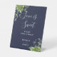 Cette élégante pancarte en eucalyptus botanique bleu marine "love is sweet favors" est parfaite pour toutes les célébrations. Conçue par Thisisnotme©