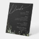 Entrez dans un monde enchanteur avec notre verdure fantaisiste et notre or | mariage noir boit panneau de piédestal, parfait pour votre mariage botanique de printemps. Orné d'eucalyptus vert sauge et d'accents dorés, ce panneau de soie exhale l'élégance et la fantaisie moderne. Imaginez vous promener dans un jardin d'été magique, entouré par les sons apaisants de la nature. Le design saisit sans effort le charme rustique de l'automne avec ses teintes vert clair, évoquant la beauté de la saison changeante. Avec une touche de sophistication minimaliste et une touche bohème classique, les détails chatoyants de la feuille d'or ajoutent une touche de glamour et de romance. Complété par une atmosphère de conte de fées gracieuse, ce panneau de piédestal exsude la classe et met en valeur la splendeur naturelle de l'automne. N'hésitez pas à nous contacter pour toute question sur le design, et laissez-nous vous aider à faire le mariage de vos rêves.